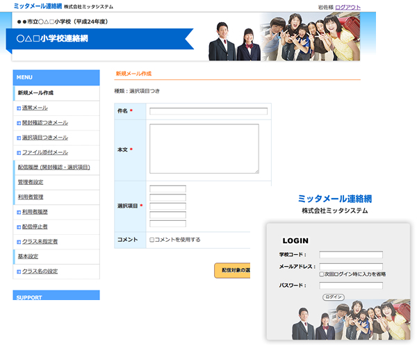 弊社の学校用メール連絡網は、当時、PTA会長だった弊社社長が、メールでの連絡網システムの必要性を感じ、高松市PTA連絡協議会と共同開発を行ったサービスです。